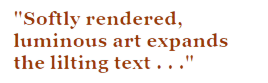 Audrey Wood masterfully employs the cumulative structure making use of repetitive phrases, but instead of building to a climax, she settles down the Napping House and lulls everyone to sleep. Don Wood’s illustrations reanimate the original Napping House with the rich colors and soft textures of the furnishings which, along with Granny, appear to be aching for a good night’s sleep in spite of blue glow of the moonscape. “The Full Moon at the Napping House” spirits readers to a familiar place for a warm and fuzzy bedtime story.